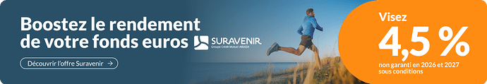 Bonjour, merci pour votre réponse, mais je ne vois pas non plus comment sélectionner le Fond Euros Rendement lors d’un arbitrage en ligne, il faut sans doute utiliser la version papier. Si on est effectivement bloqué sur les fonds Euros Rendement, Rendement 2 sans pouvoir arbitrer vers le Fonds Euros Opportunités 2 plus performant et sans augmenter la part d’UCs, la seule solution est donc de faire un retrait partiel et d’effectuer un nouveau versement, mais dans ce cas peut-être vers un autre assurance et profiter d’une offre bonus, tant pis pour Suravenir.