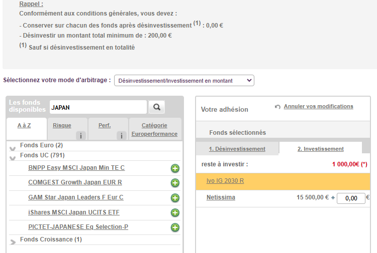 rien à voir avec les interfaces beaucoup plus conviviales de spirica (Spirit 2) ou de Swisslife placement direct.