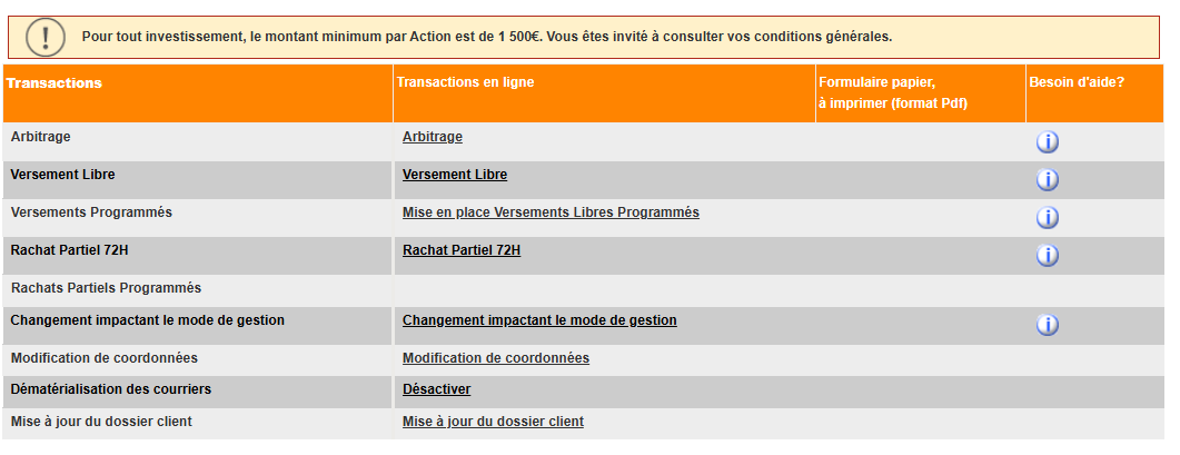 Je plussoie .Effectivement interface très vieillotte peu pratique c’est pour ça que j’utilise peu cet assureur ( il y a aussi d’autres critères tel que choix des UC , choix des SCPI etc.. personnellement qui fait que je n’aime pas Generali )