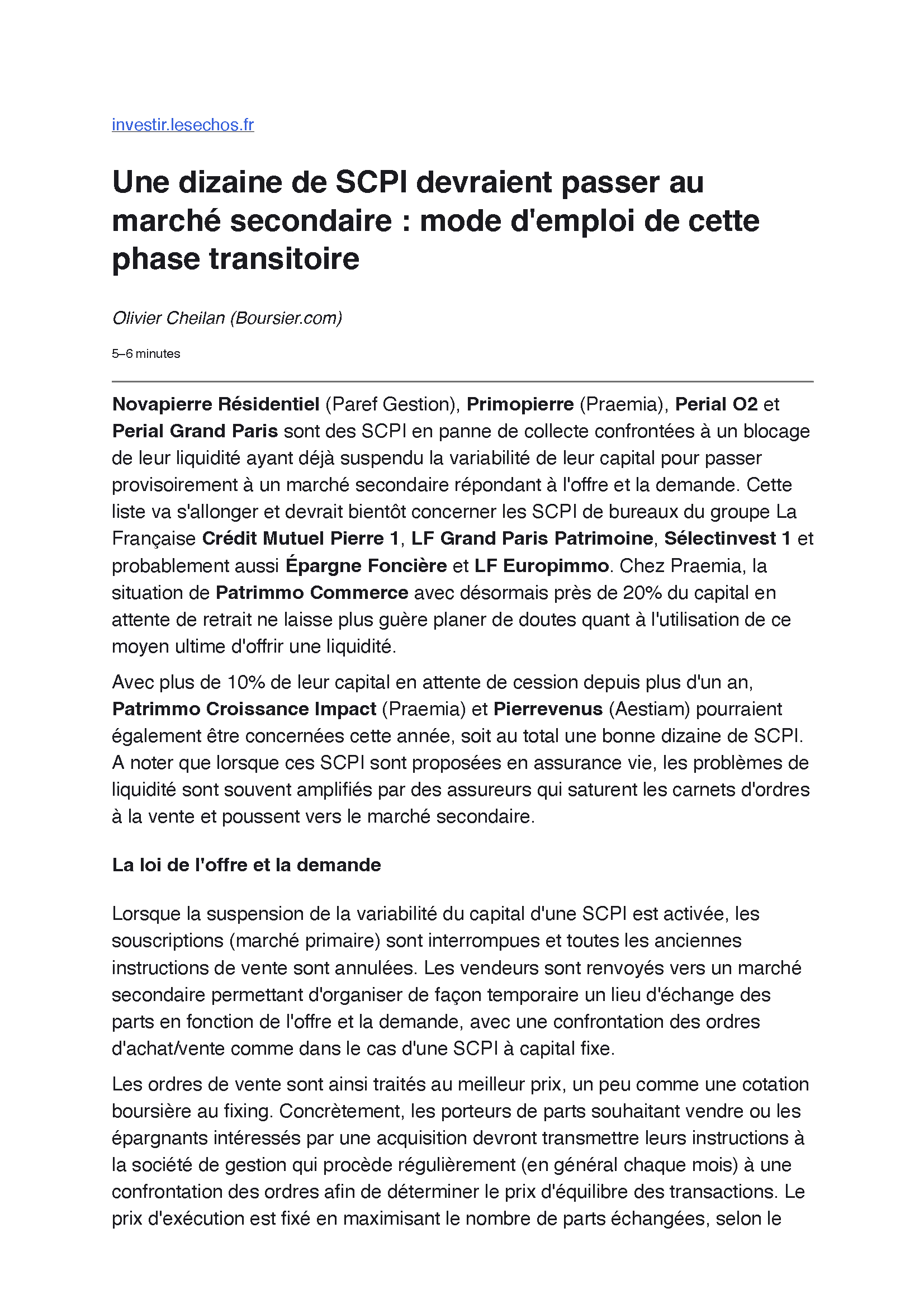Cette décision s’inscrit dans un contexte de marché difficile pour l’immobilier d’entreprise et plus particulièrement sur les SCPI PERIAL O2 et PERIAL Grand Paris :