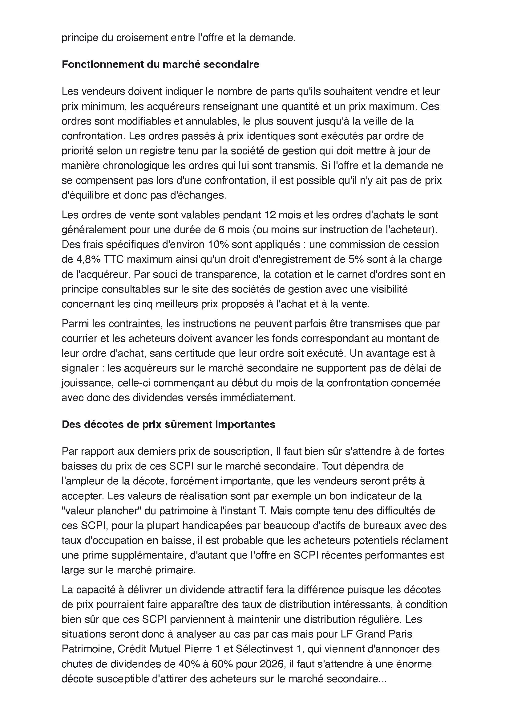 Faut eviter les excès de noirceur même si c’est une SCPI qui est en grosse difficulté malgré tout. Il y a encore pire sur le marché en 2026 et on va le voir au premier semestre 2026.