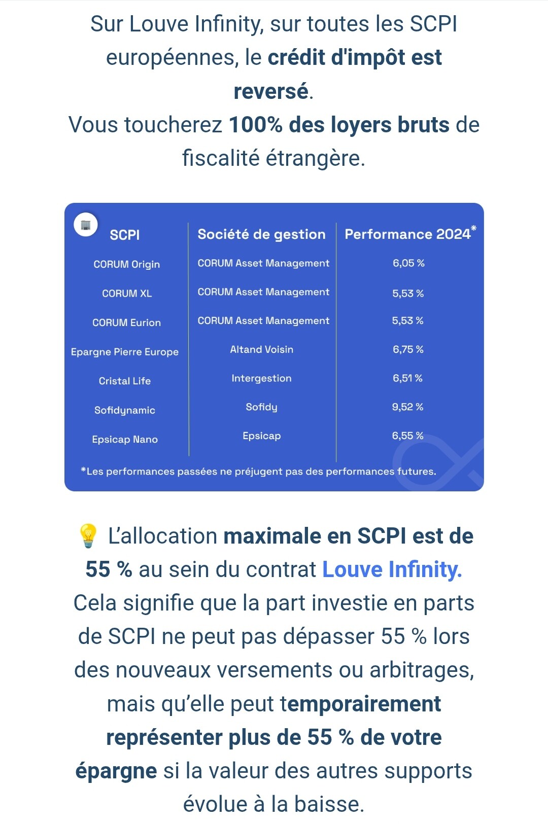 oui ça a fait couler de l’encre sur tous les forums surtout à 0.35% de frais de gestion… Si ça se réalise , ça va pas mal challenger toutes les autres AV… Louve invest est plutot sérieux et on peut supposer une bonne surprise avec des SCPI dedans puisque eux même sont des spécialistes des SCPI avec de bonnes relations avec les gérants de SCPI