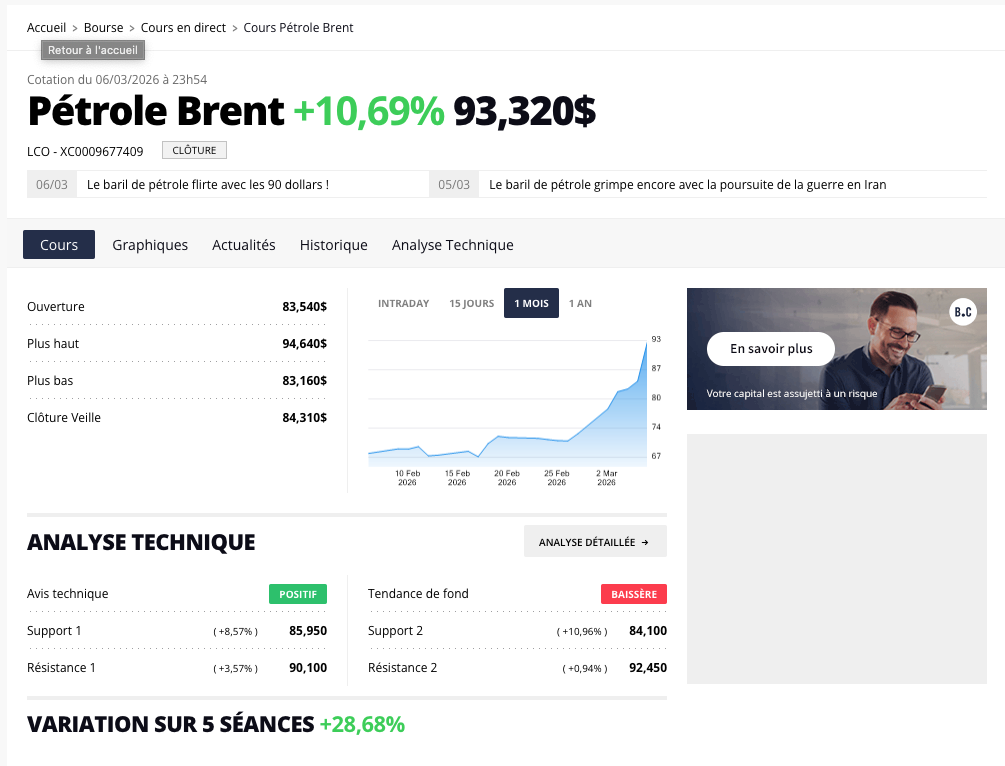 Après le Baril termine la journée à +10,69 % et presque 30 % sur la semaine.